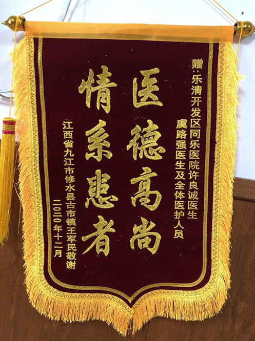 从手术室出来后,王先生恢复良好立马就不痛了,坐在病床上侃侃而谈:“许医生每天都到病房观察我的恢复情况,十分关心病人,我们特别感动。在医生的眼中,这手术可能不大,对我来说,却是做过的一场大手术,非常感谢外科的医护人员!”出院后,王先生还特意送来锦旗,上面写着“医德高尚、情系患者”,闪闪发亮。(文/图 虞路强)
